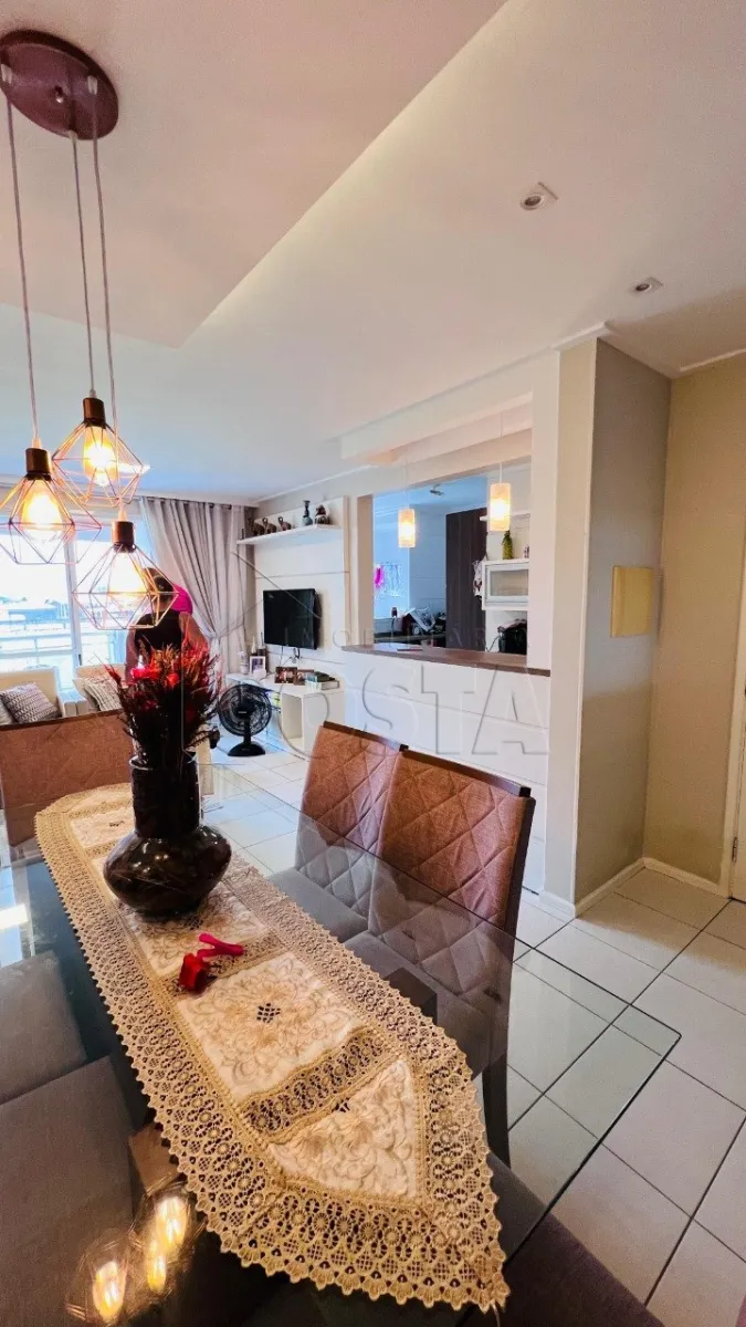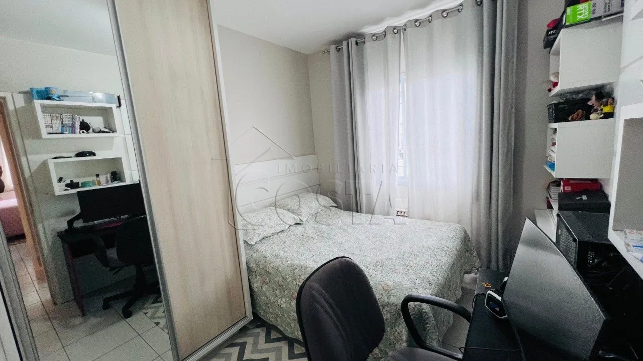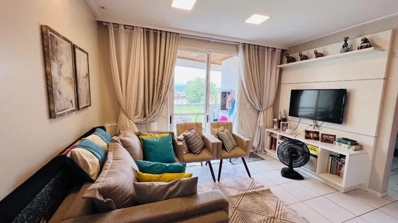 Apartamento 2 quartos em Pagani, Palhoça com 83m² e vista da montanha. O imóvel possui 1 suíte, 2 banheiros completos e 1 vaga de garagem coberta. Acabamento em porcelanato em todos os ambientes, elevador para maior comodidade e escritura pública regularizada para financiamento bancário.