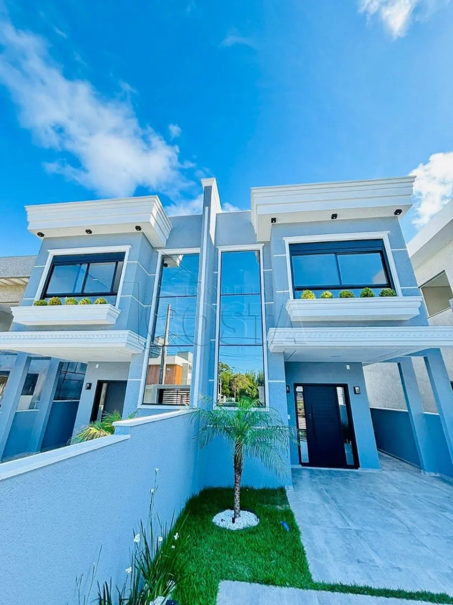 INGLESES DO RIO VERMELHO Excelente Sobrado Duplex Localizado na praia de Ingleses, Loteamento com praça de área verde, quadra esportiva, espaço fitness ao ar livre, playground, calçadas padronizadas, iluminação noturna, imóvel com 3 dormitórios (sendo 1 suíte), sala com cozinha integradas, banheiro social, lavabo, lavanderia interna, área gourmet com churrasqueira, garagem para 2 carros descoberta, todo imóvel co piso porcelanato, massa corrida nas paredes, tetos em gesso, portas brancas laqueadas, textura externa, frente com pele de vidro.