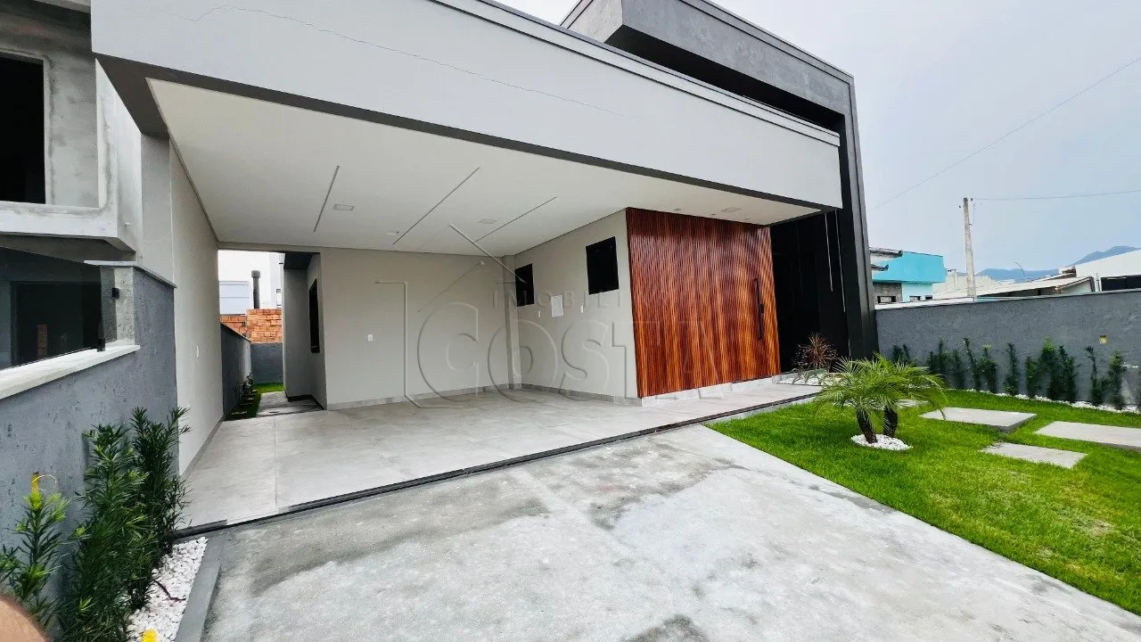 LOTEAMENTO BELA VISTA Linda casa com 3 dormitórios sendo uma suíte e closet,110,00m² de área privativa, sala e cozinha integradas com pé direito duplo, rebaixo de m gesso, piso porcelanato, terreno com aproximadamente 220 metros, garagem coberta para 2 carros, banheiro social, área de serviço, churrasqueira!Localizada no Loteamento Bela Vista, Palhoça/SC.