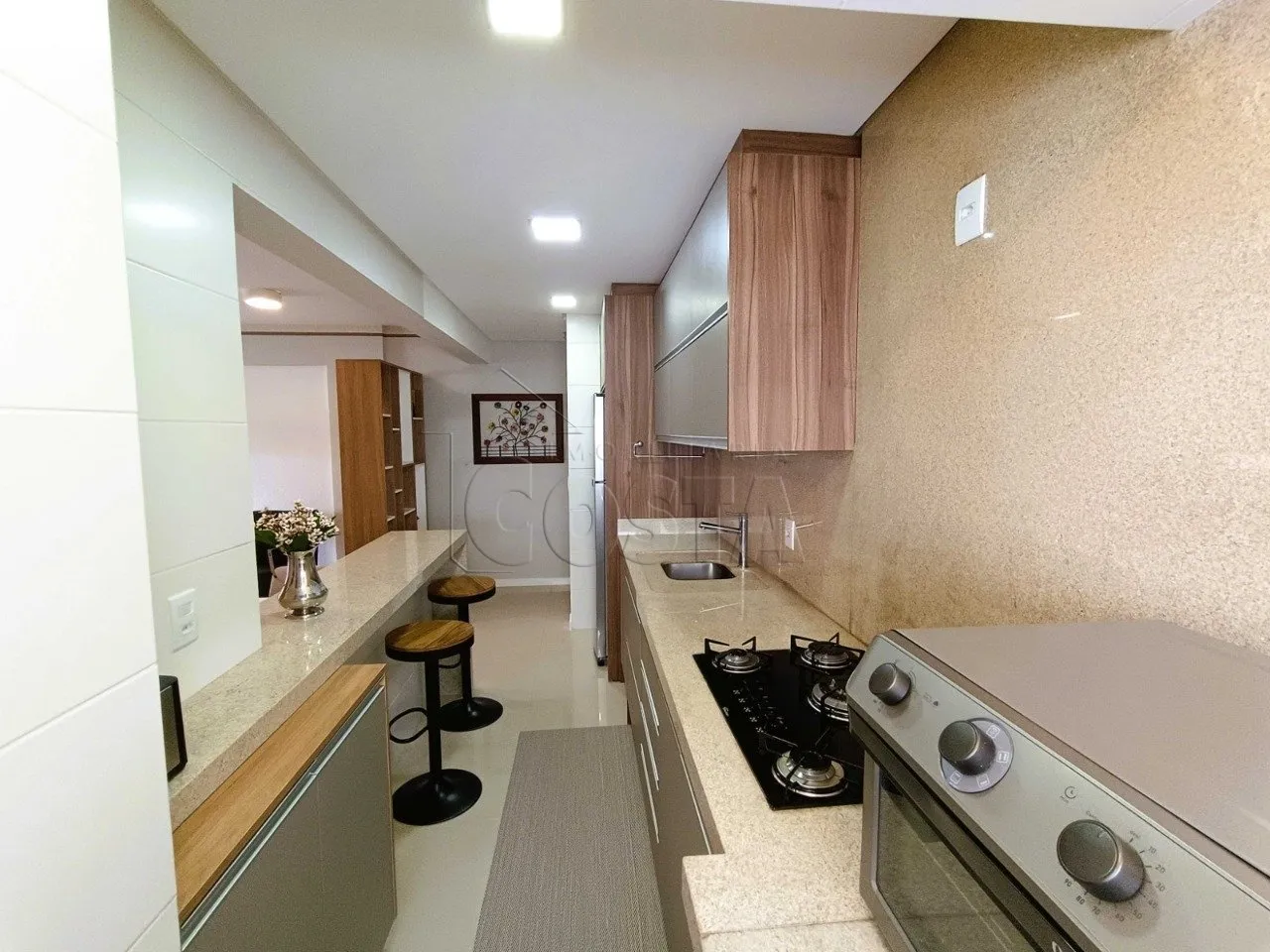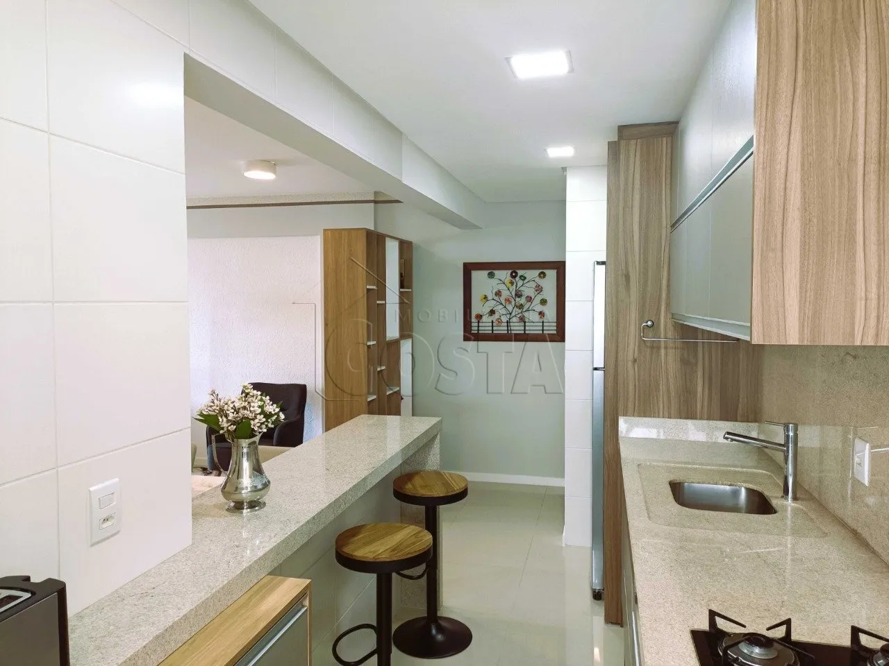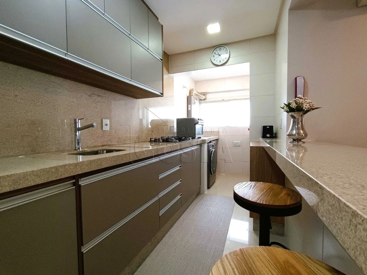 Apartamento conta com 96,00m² de área útil, 3 quartos sendo uma suíte, Sacada grande fechada com sistema Reike com churrasqueira, Sala ampla, Cozinha ampla, Móveis projetados, 4 aparelhos de ar condicionado, Aquecedor a gás, 2 vagas de garagem.