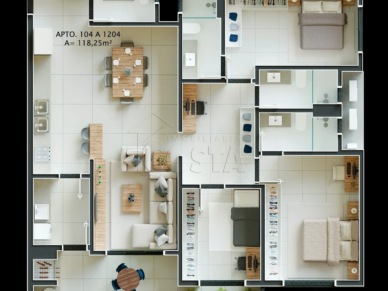 Apartamento com 4 Suítes e 347m² - Pedra Branca