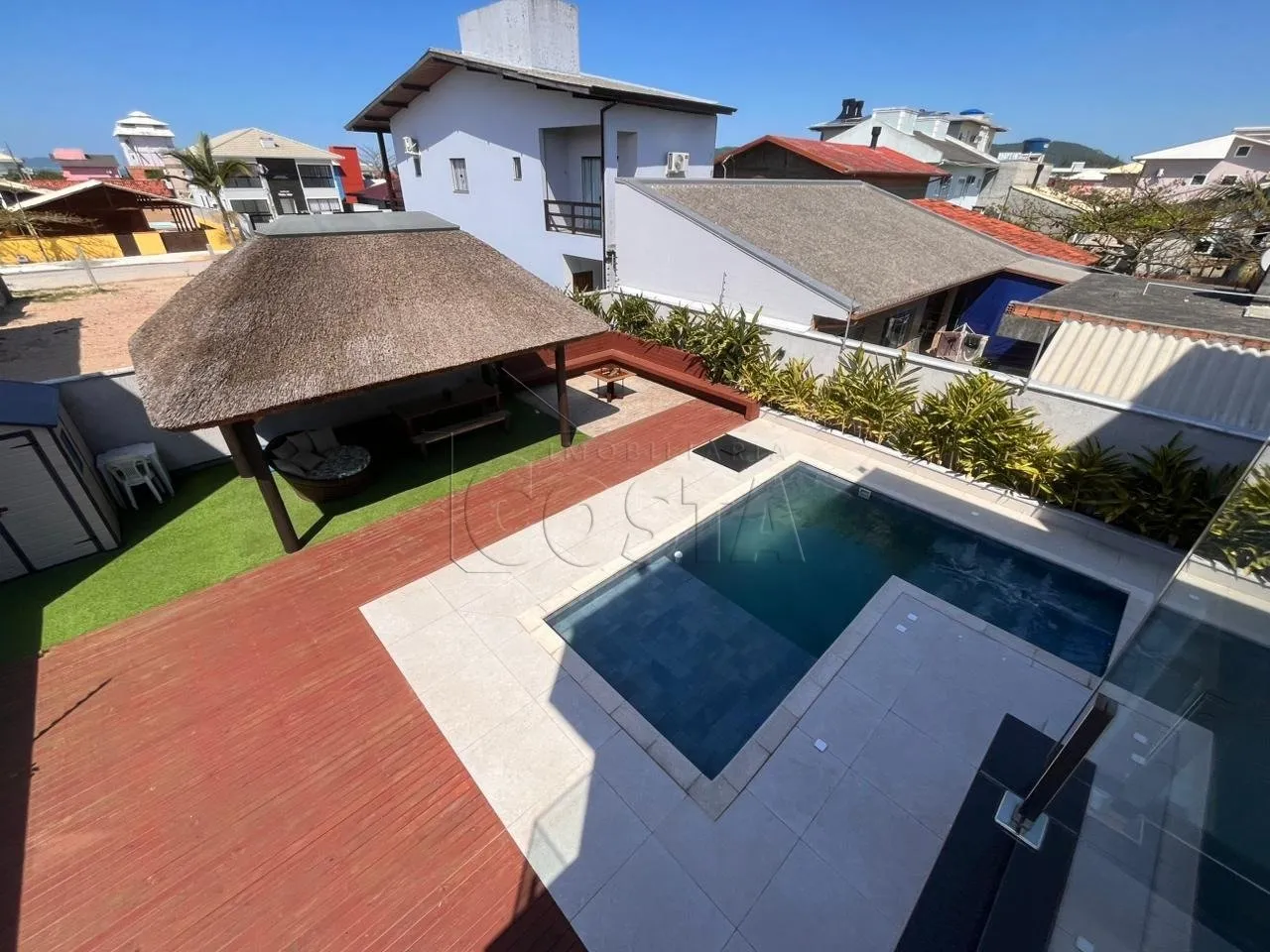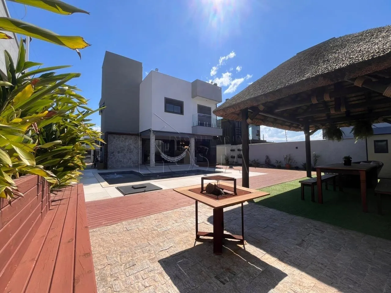 Casa 3 quartos em Praia da Pinheira, Palhoça com 153m² de área privativa e vista para o mar. O imóvel possui 3 dormitórios sendo 1 suíte, 3 banheiros completos, 2 vagas de garagem e área total de 372m². Acabamentos em porcelanato, ar condicionado instalado e piscina privativa com churrasqueira para momentos de lazer.