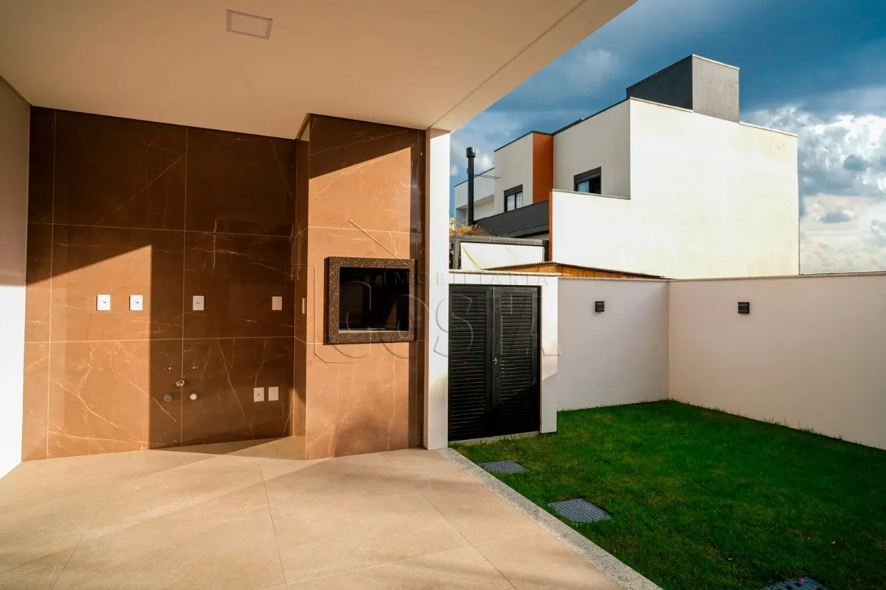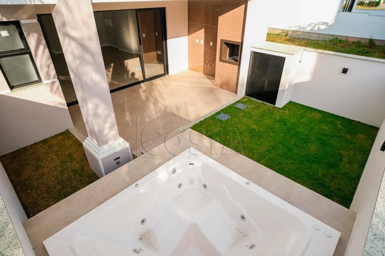 Casa em Condomino Fechado - Deltaville Biguaçu/SC 3 quartos sendo uma suíte com closet187 m² privativos- Spa para 5 pessoas com filtro, aquecedor, 12 jatos e encostos de cabeça (completo)- Churrasqueira revestida em porcelanato e granito- 2 vagas de garagem- Porta principal com fechadura eletrônica digital Pado com rolete e acionamento por biometria, senha, aplicativo- Sistema de água quente acionado por aquecedor de passagem- Janelas com venezianas integradas e acionamento por controle remoto. Janela principal de fachada com sistema pele de vidro e vidros refletivos- Escada interna e parapeitos com corrimão em vidro de 10mm- Linha ³A´ de porcelanatos retificados Villagres e piso vinílico na parte superior- Sistema de captação de água da chuva com caixa de 500 litros- Projeto de paisagismo e iluminação realizado por escritório de arquitetura