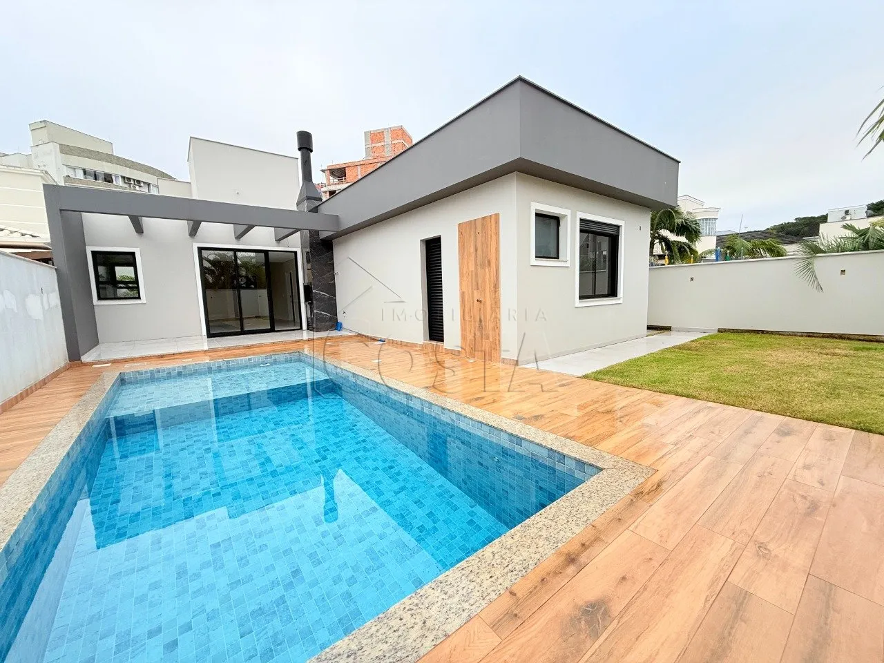 PEDRA BRANCA - PALHOÇA/SC- Sala de estar- Sala de jantar- Cozinha- Jardim de inverno- Lavanderia- BH social- 02 Quartos- 01 Suite com closet e hidromassagem- Piscina de concreto armado com revestimento eliane.- BH na area de piscina- Churrasqueira com pia- Garagem- Agua aquecida com placas solares e boiler.- Sistema de placa solares para geração de energia elétrica.