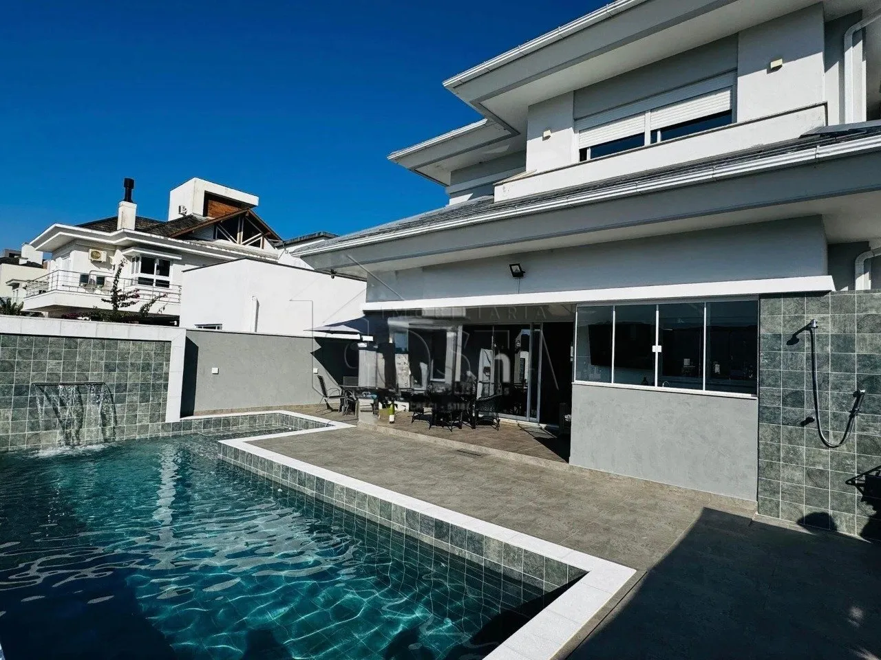PEDRA BRANCA Diferenciais:Aquecimento solar, energia solar, churrasqueira, espaço gourmet, hidromassagem, lareira, piscina e sacadas com vista para a montanha.Descrição do imóvel:Pavimento superior:3 dormitórios, sendo 1 suíte master com sacadas e vista para a montanha.1º Pavimento:Sala de estar, jantar e cozinha em conceito aberto;Área de serviço;2 banheiros;1 lavabo;2 vagas de garagem cobertas + 2 vagas descobertas;Área gourmet integrada à piscina;Pergolado para momentos zen;Piscina em concreto com tratamento a sal (dispensa o uso de cloro);Placas solares para aquecimento de água;Sistema fotovoltaico para geração de energia elétrica.Valor: R$ 2.500.000,00