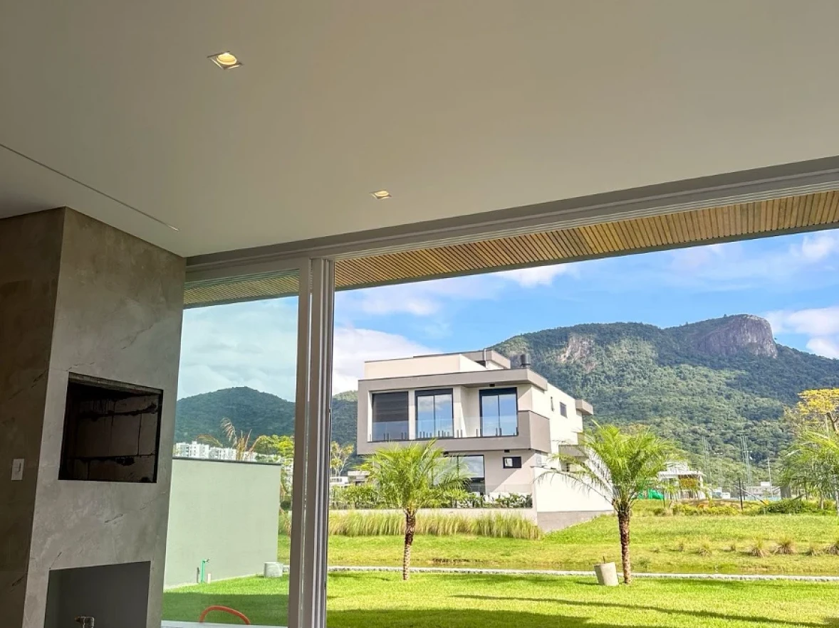 São 241 m² distribuídos em uma planta magnífica em terreno de 300 m², fundo lago.