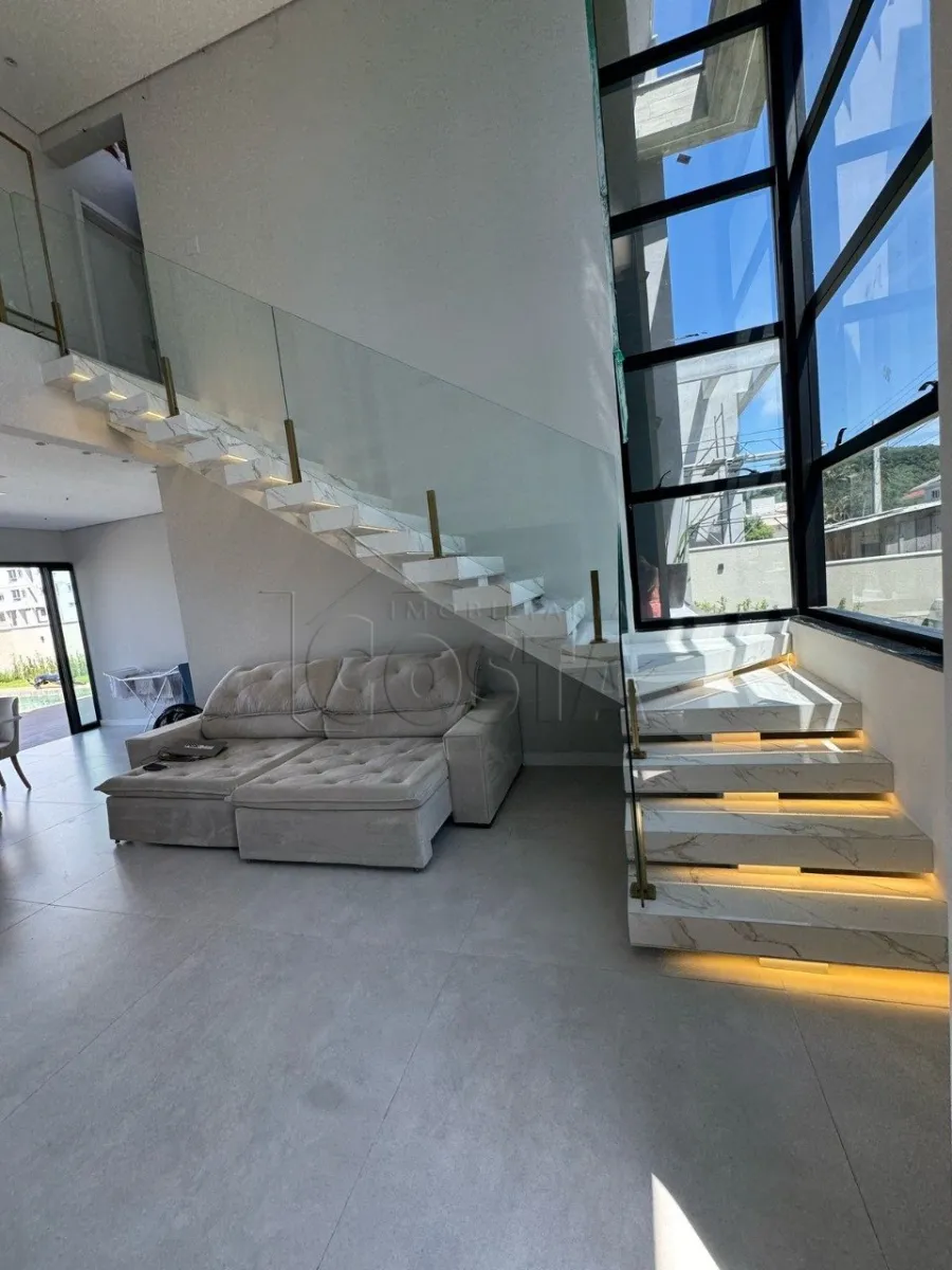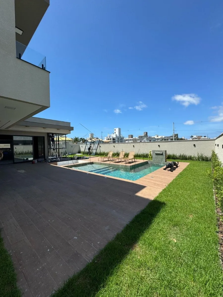 INGLESES DO RIO VERMELHO Linda Casa alto padrão no Ingleses, Condomínio Harmonia, ficando apenas 800 mts do Mar, o imóvel contém 5 Dormitórios ( sendo 2 suítes e uma suíte master com closet), sala de estar, sala de jantar, cozinha em conceito aberto, lavabo, área de serviço com lavanderia, área gourmet com churrasqueira a carvão, piscina em alvenaria, garagem coberta para 2 carros e mais 2 descobertas, jacuzzi fechada. A casa possui entrada para placa solar, ar condicionados split, persianas automatizadas, piso porcelanato, teto com pé direito alto e gesso, luzes de leds, paisagismo em todo terreno, móveis planejados.