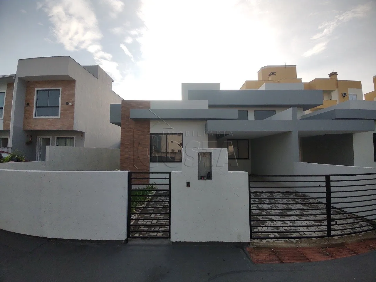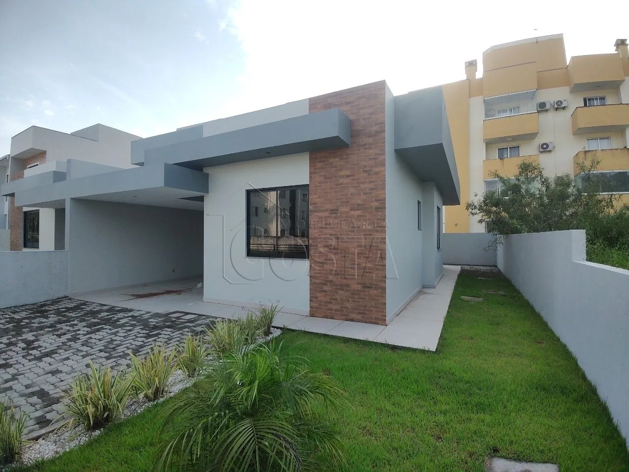 - EXCELENTE CASA GEMINADA 3 DORMITÓRIOS- Loteamento Bosque da Pedra. - Sertão do Maruim - São José/SC.- MULTFAMILIAR !!!Arquitetura contemporânea, linhas retas, esquadrias escuras, sala com pé direito alto e fachada com revestimento de tijolinhos.- Imóvel conta com Pé Direito Duplo;- Sala e Cozinha Integradas;- Dois Quartos;- Banheiro;- Área de Serviço;- Excelente padrão de acabamento;- Vaga de garagem descoberta;Valor de R$: 469.000,00 | USE SEU FGTS.