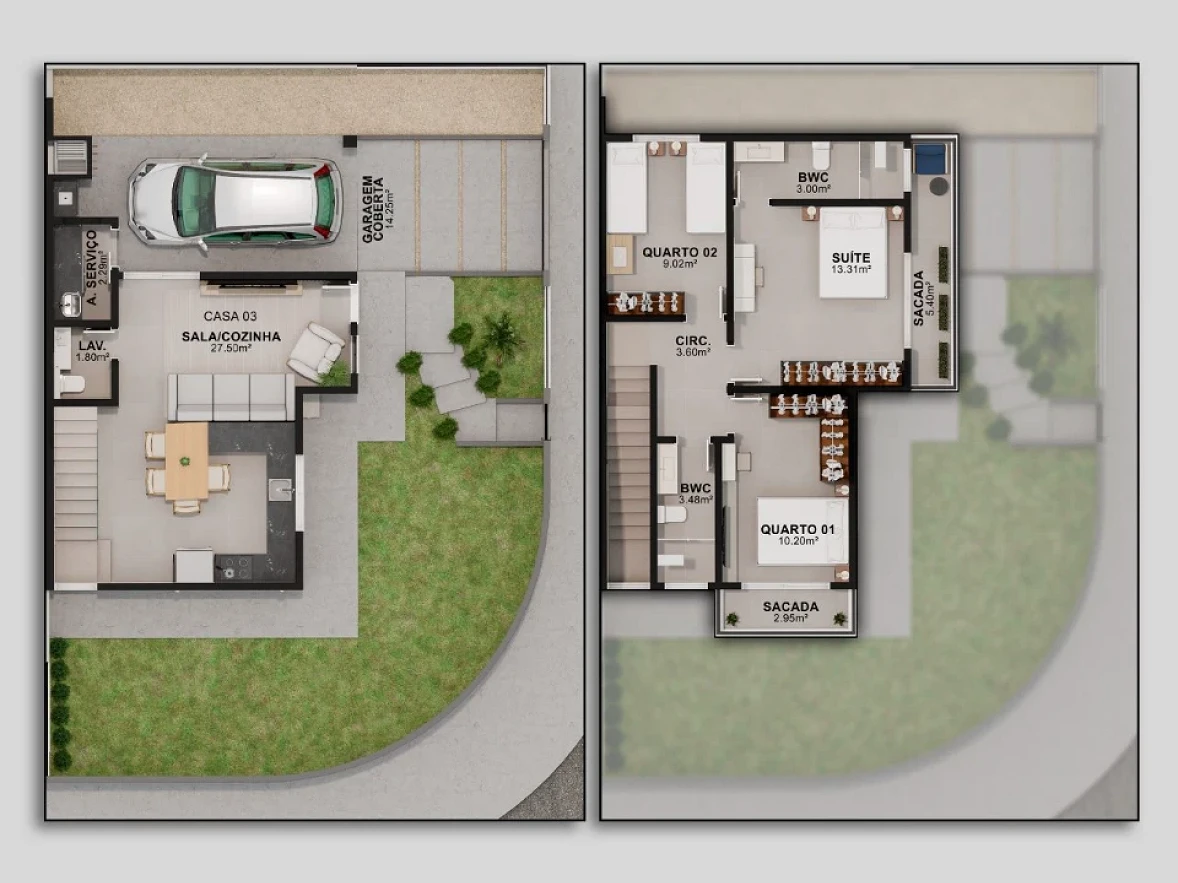 Sobrado geminado 3 quartos em Potecas, São José com 129m² . O imóvel possui 3 dormitórios sendo 1 suíte, 2 banheiros completos e 1 vaga de garagem coberta. A distribuição inteligente dos ambientes oferece sala ampla, cozinha planejada e área de serviço independente, proporcionando funcionalidade para toda a família.