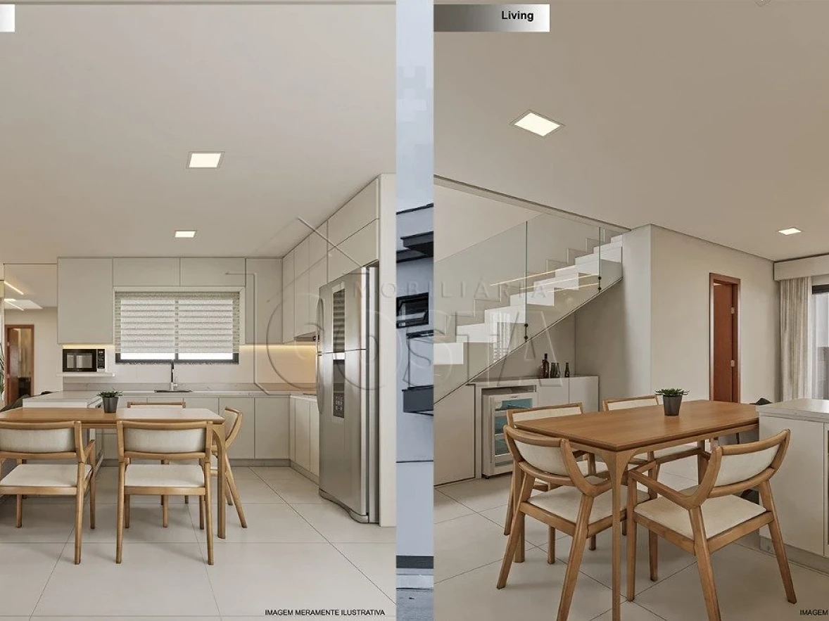 Sobrado geminado 3 quartos em Potecas, São José com 124m² e 129m² . O imóvel possui 3 dormitórios sendo 1 suíte, 2 banheiros completos e 1 vaga de garagem coberta. A distribuição inteligente dos ambientes oferece sala ampla, cozinha planejada e área de serviço independente, proporcionando funcionalidade para toda a família.